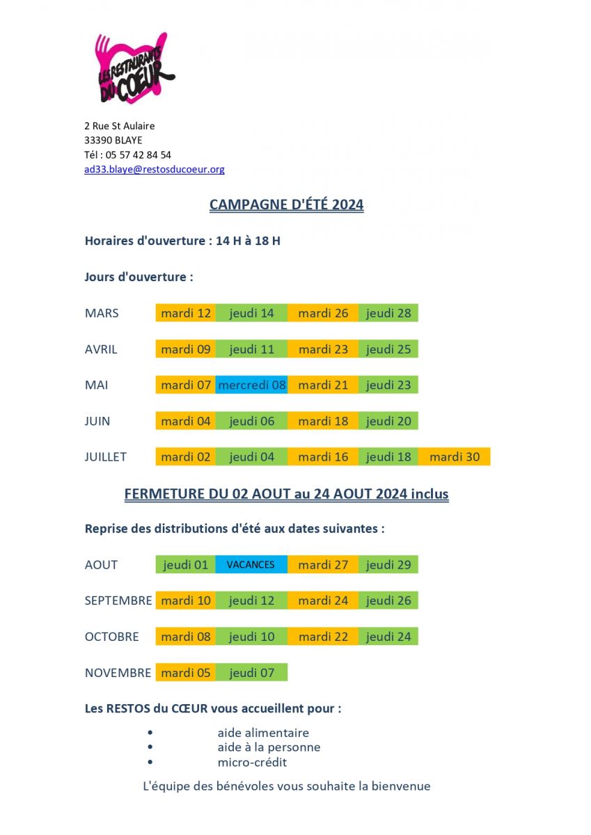 Vous trouverez le calendrier des jours de distributions pour cette période.