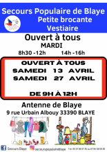 Le SECOURS POPULAIRE DE BLAYE, organise une